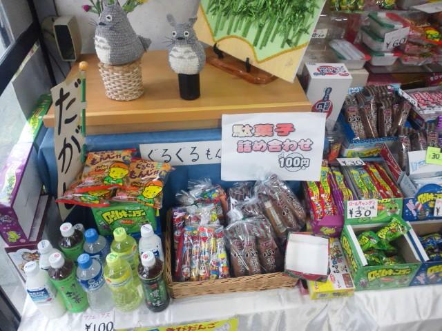 (トトロが見守る駄菓子屋さんで、遠足のお供に一房いかが!)