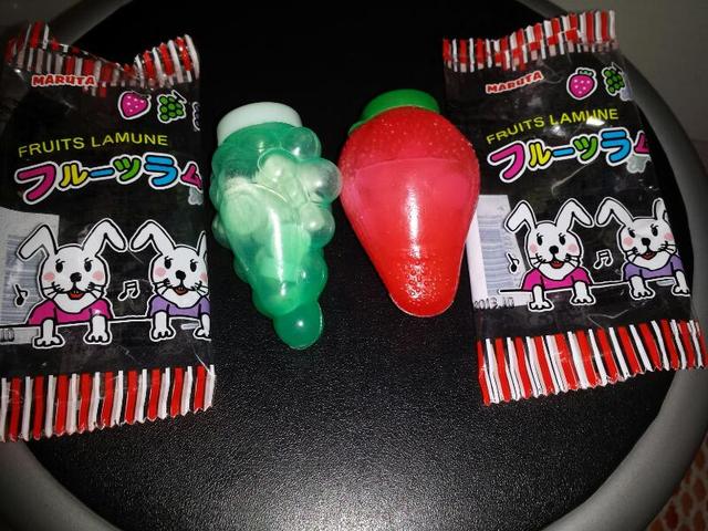 イチゴ味はややピンクがかり、マスカット味はやや緑がかっているのがお分かりになると思います。