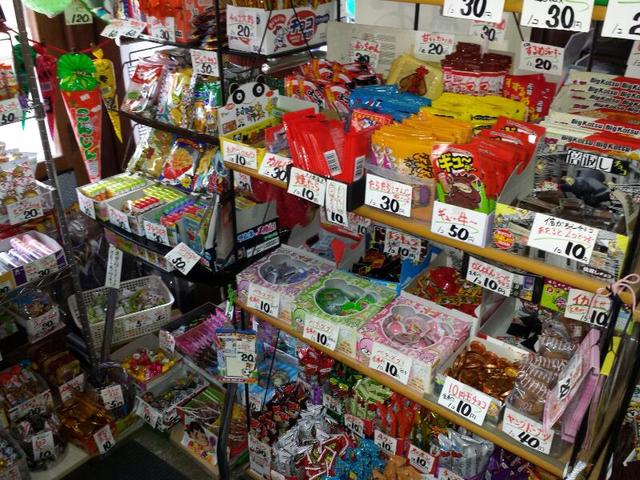 (駄菓子がたくさん!楽しい手書きのPOPもいいね!)
