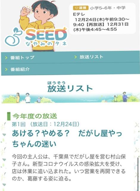 子供〜大人まで全世代が考えさせられる道徳番組という、Eテレ(教育番組)に出演される事は、他の駄菓子屋・小売店に対しても大きな励みになると思います。