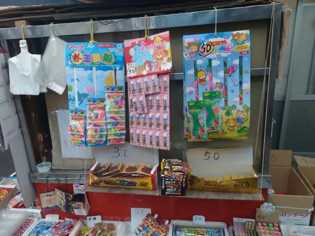 徐々に駄菓子専業へとシフトチェンジしていき、今としては非常に珍しく、さりとて、初期駄菓子屋の原型とも言える青空露天スタイルの楽しい店として、周辺の子供達に愛され続けています。