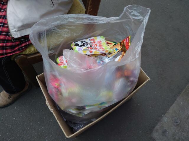 (駄菓子台には『キッコーマン』の黄色い醤油ケース。この統一感が素敵。)