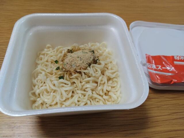 (ラーメンと違って、粉末スープは湯切りしてしてから入れるべし)