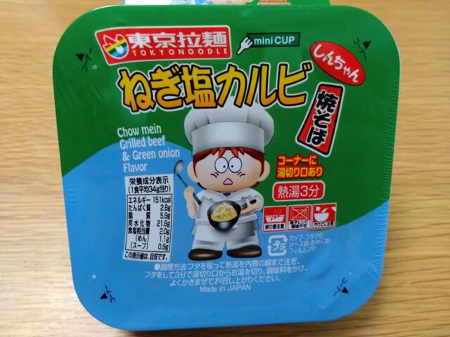 おやつのお供に、小腹の足しに、+一品の選択に、つぶらなしんちゃんプレゼンツの新味【ねぎ塩カルビ焼そば】をお一ついかがでしょうか!