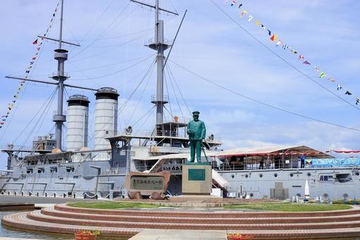 (日露戦争の英雄・東郷平八郎元帥と旗艦【三笠】が見守る横須賀港)