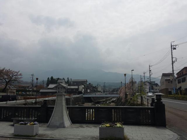 (あいにくの天気でスマン。市内を流れる中津川と木曽の山々)
