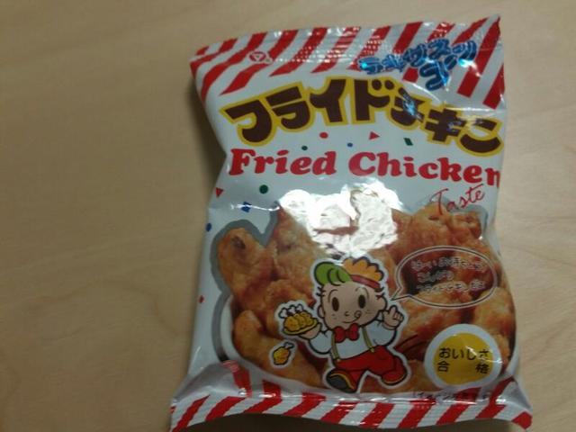 今回は、1袋=20円で買えるスーパー駄菓子「テキサスコーン」シリーズから、好きな人も多いんじゃない?フライドチキン味を御紹介しよう。