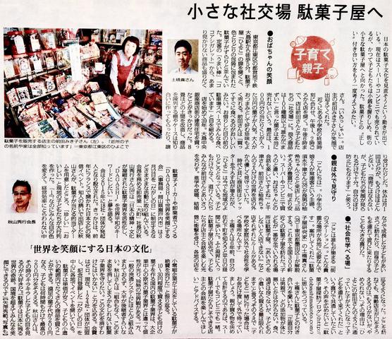 毎日新聞 「小さな社交場、駄菓子屋へ!」