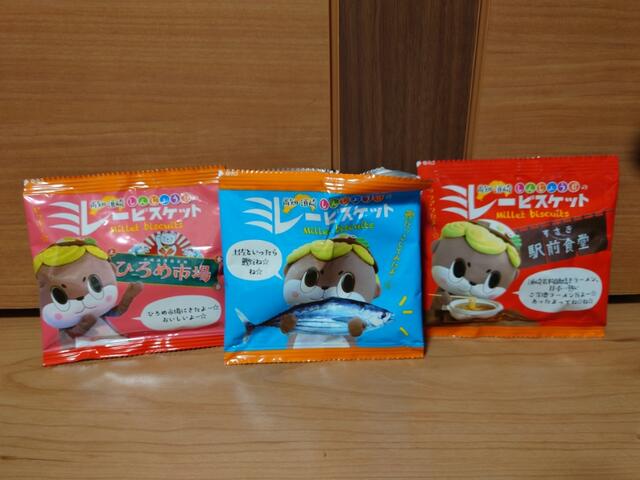 パッケージを見つつ掻き立てる須崎への旅情と、ニホンカワウソ絶滅に対する憤慨の両気持ちを、ミレービスケットのブドウ糖が優しくケア‥