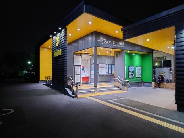 (東武小泉線『西小泉』駅。ラテンの風吹く駅舎の色は南米カラー)