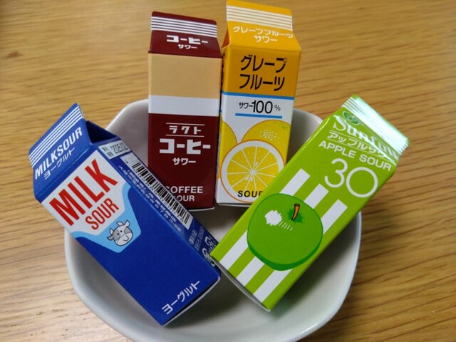 4種類の飲み物パックのパロディにサワーのミンツが入っている【デラックスパワーパック】がとんでもなく精巧で、中のミンツが激烈にうまい!