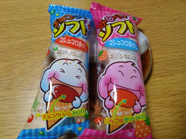 チョッコっとソフト(チョコクリーム入り)・ストロベリーソフト(いちご味ゼリー)の2種類