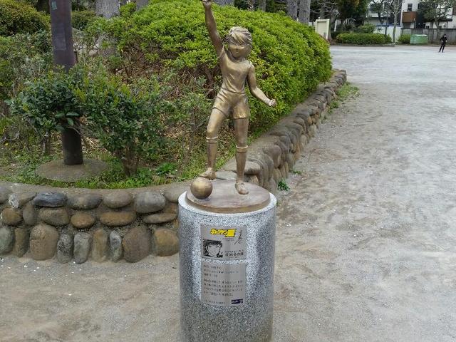 (四つ木エリアに点在するブロンズ像。日向小次郎像バージョン)